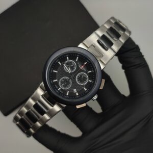 Master Grade Chronograph Watch – Silver Black Chain (Black Dial) 1