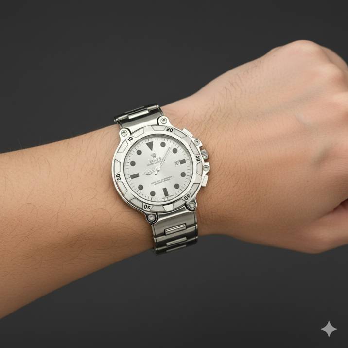 - HEAVY WEIGHT PREMIUM QUALITY WATCH SILVER CHAIN WHITE DIAL
