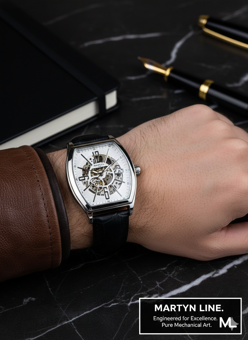 Home Watches MARTYN Luxury Black  White Dial Martyn Skeleton Automatic Watch