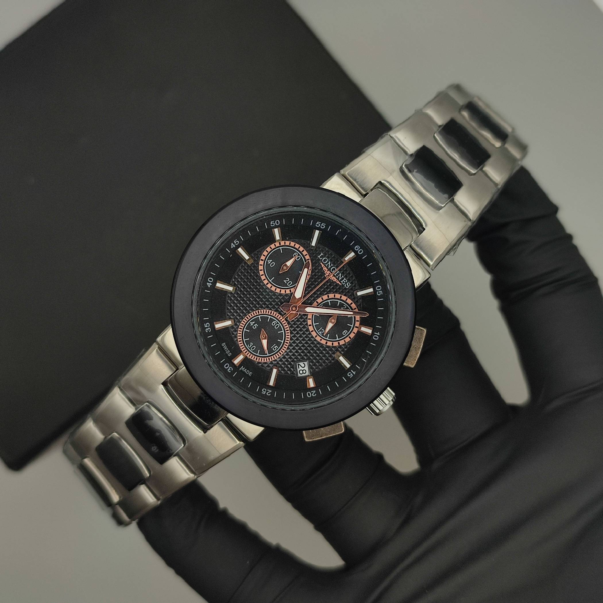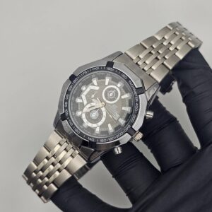 Master Grade Chronograph Watch – Silver Black Chain (Black Dial) 1