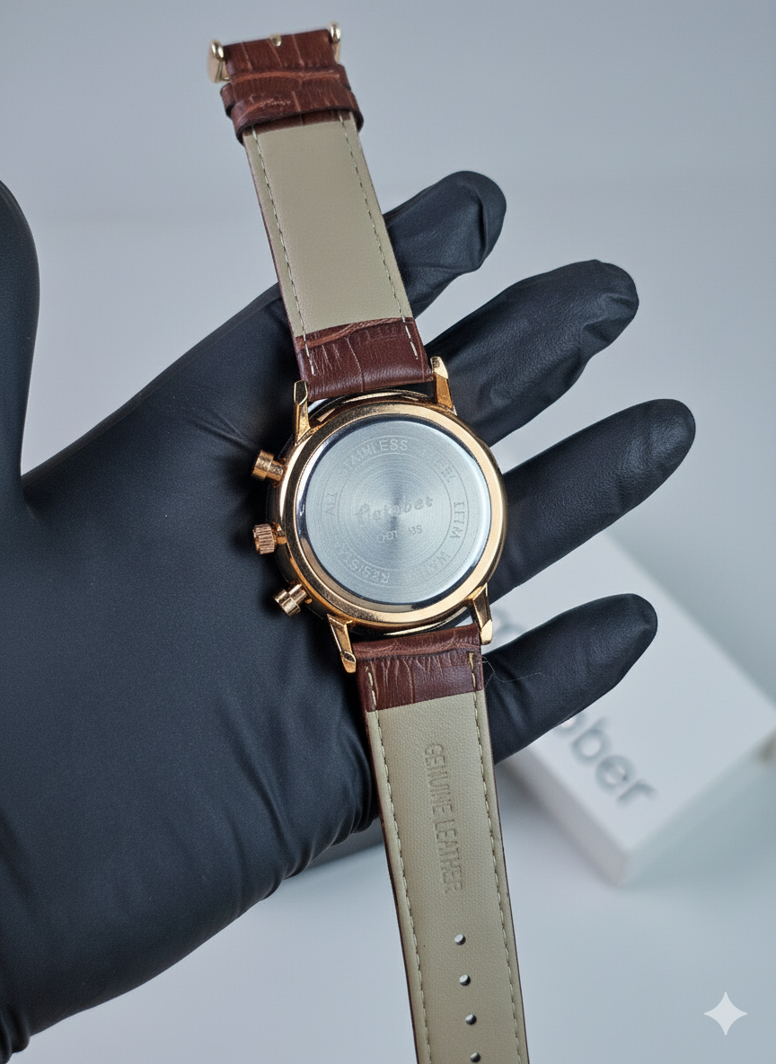 Strap Premium brown leather strap with detailed stitching for added elegance.
