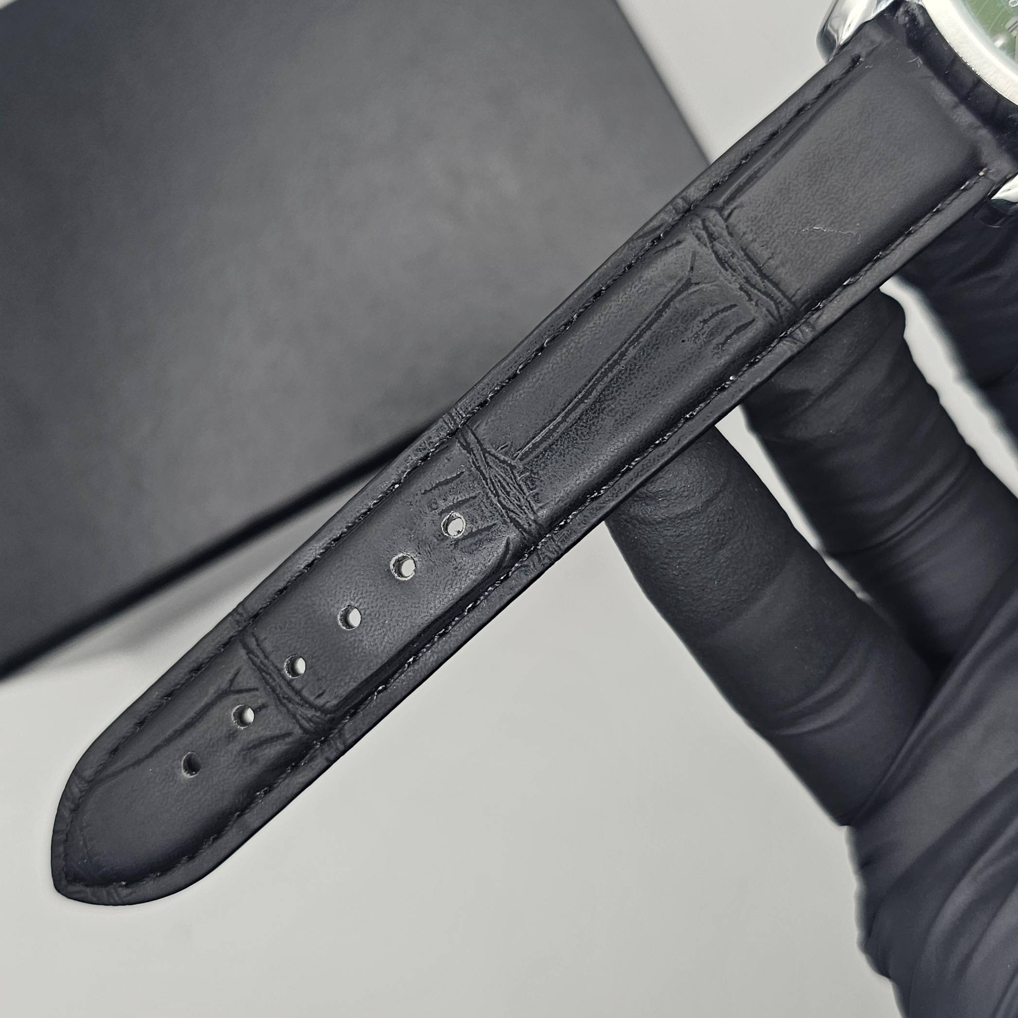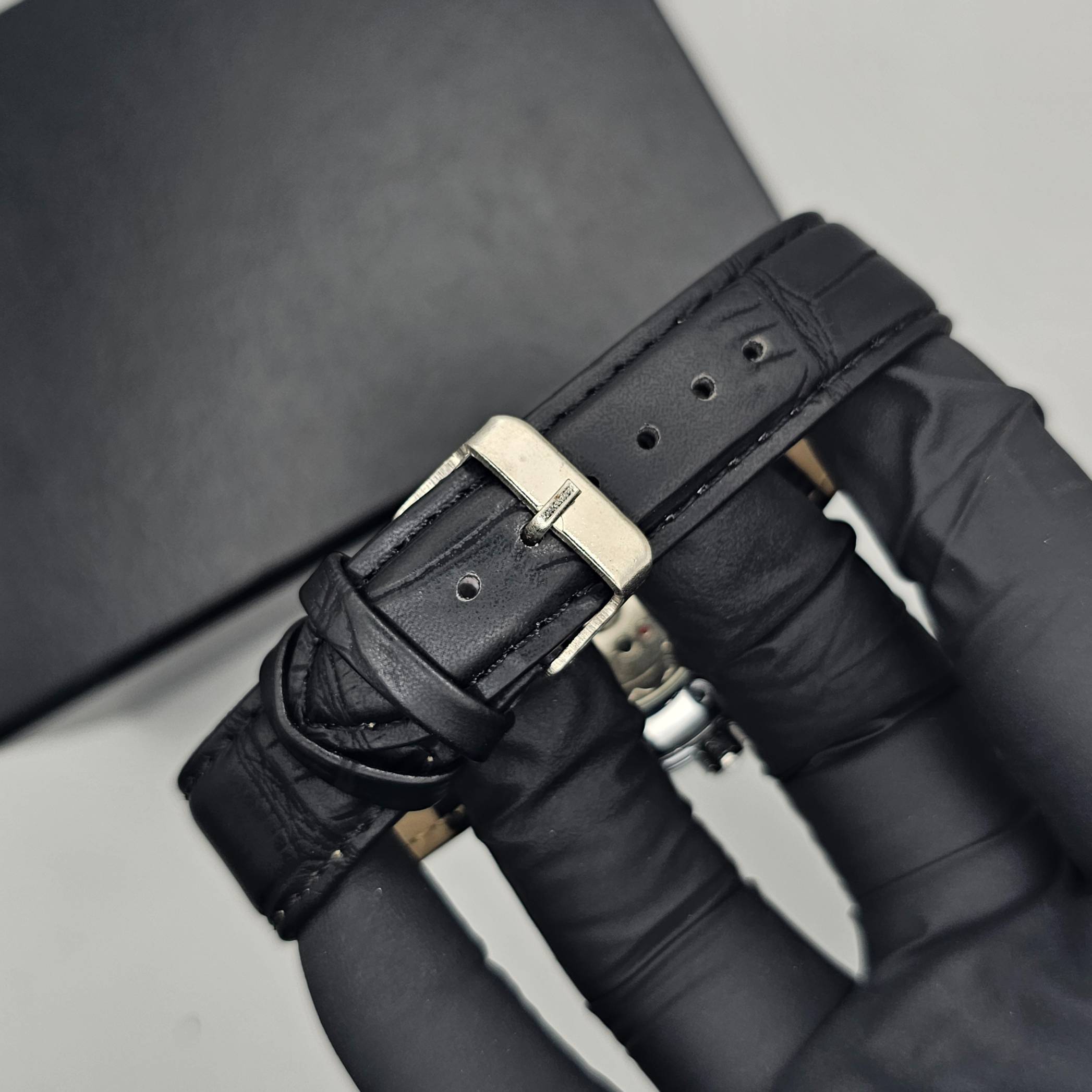 • Strap Premium Black leather strap with detailed stitching for added elegance.