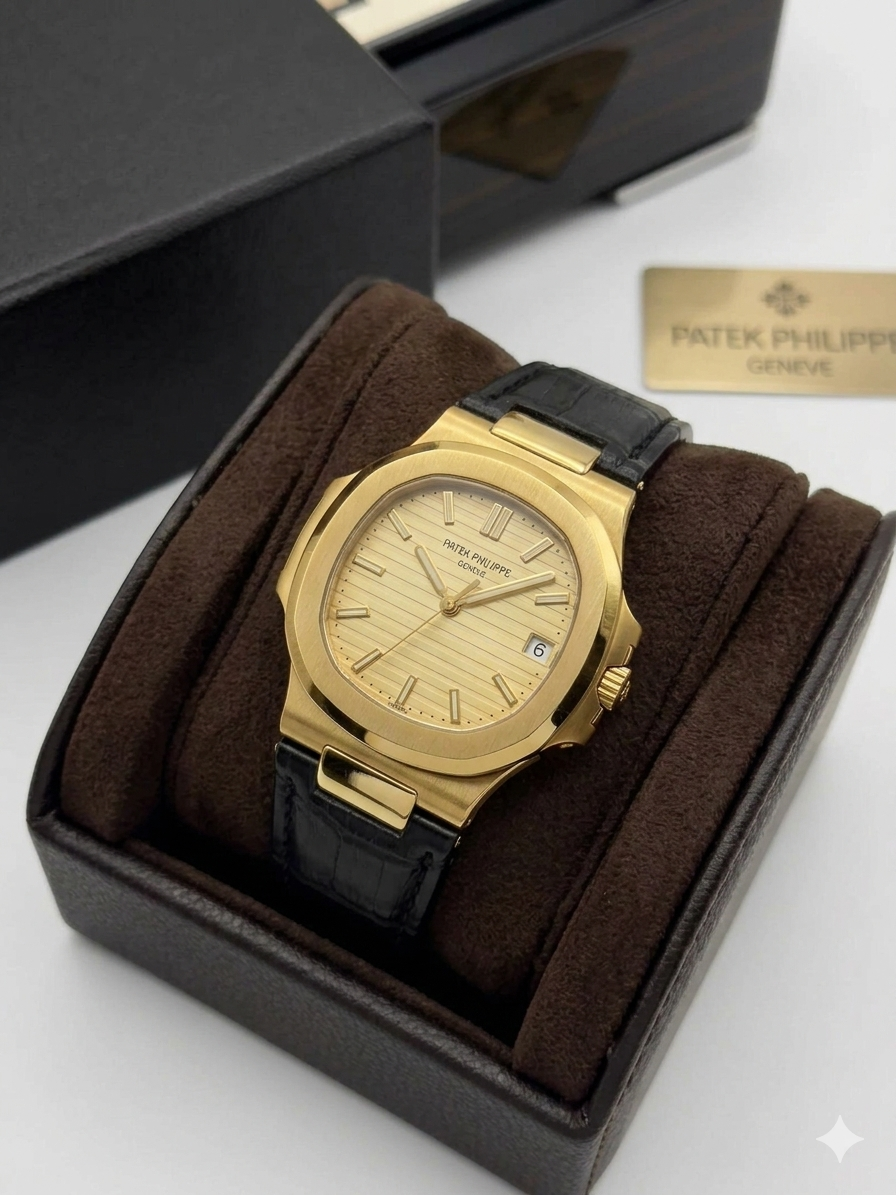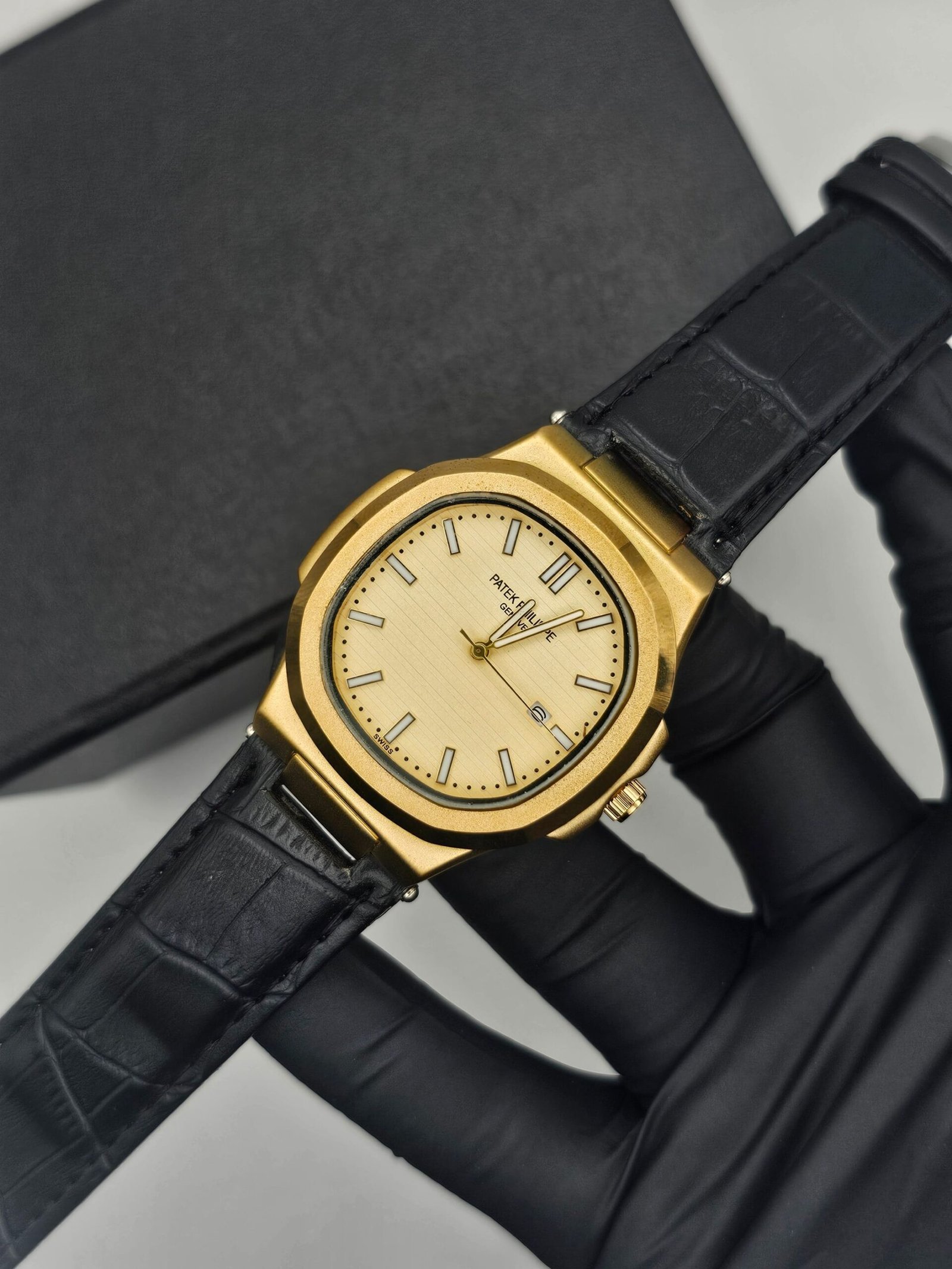 • P-P Premium Quality Strap Watch (GOLDEN DIAL)
