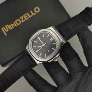 Luxurious Silver Watch with Black Leather Strap ( Black )